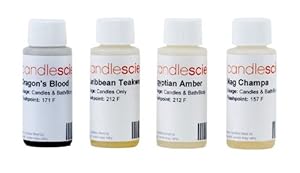 Includes: Dragon's Blood, Caribbean Teakwood, Egyptian Amber, and Nog Champa Concentrated fragrance oils that meet IFRA standar